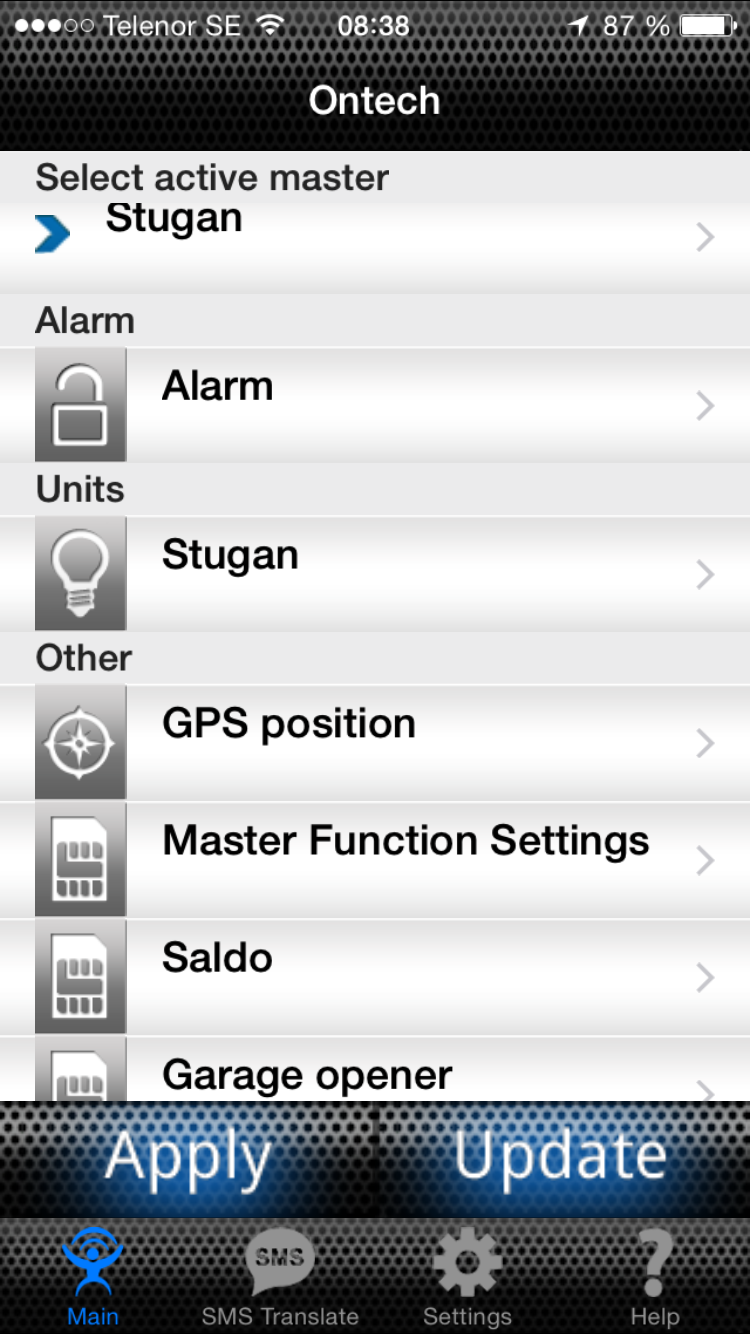 In the app for Android the SMS traffic is completely integrated in the background. Up to 20 different Ontech GSM units can be controlled from the same app.